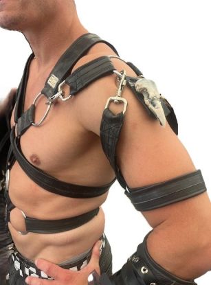 Als Besonderheit dieses Gurt Beispiels, wurde ein Ring mit Rabenschädel auf dem Deltamuskel positioniert.