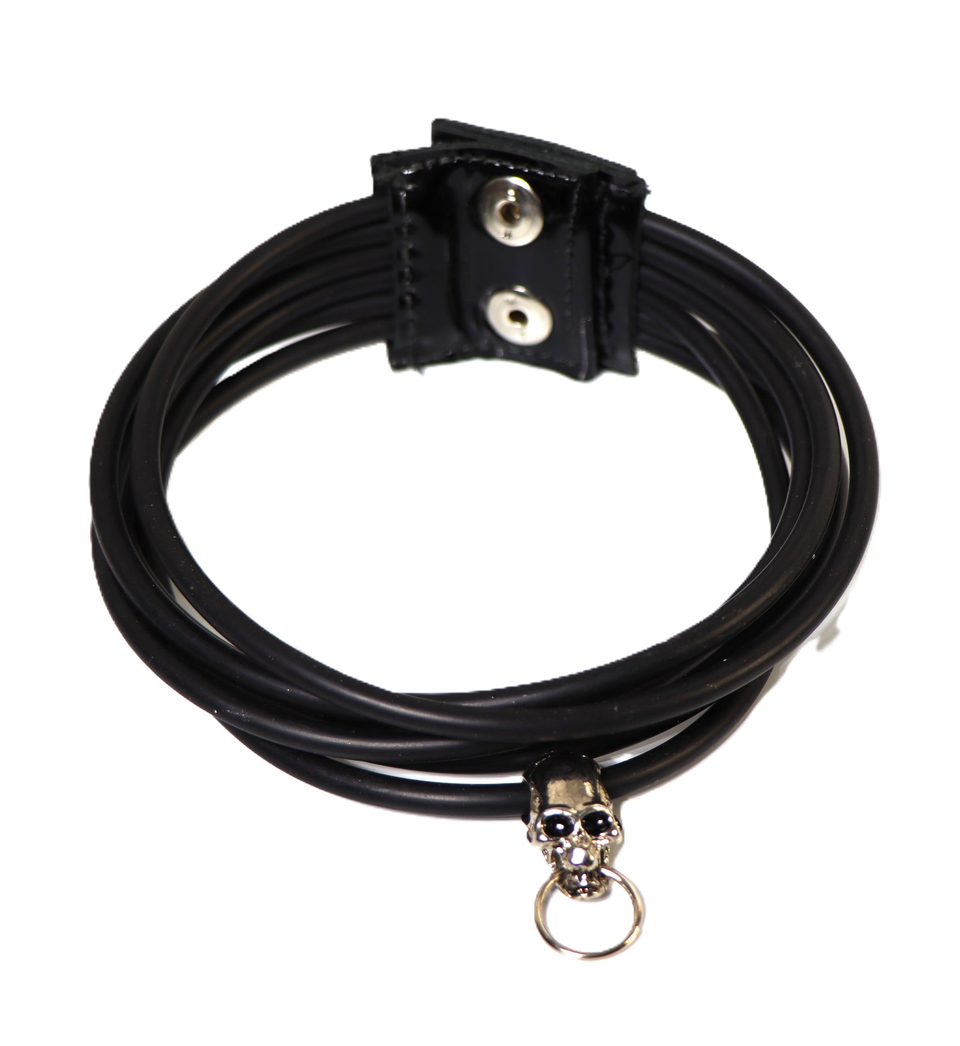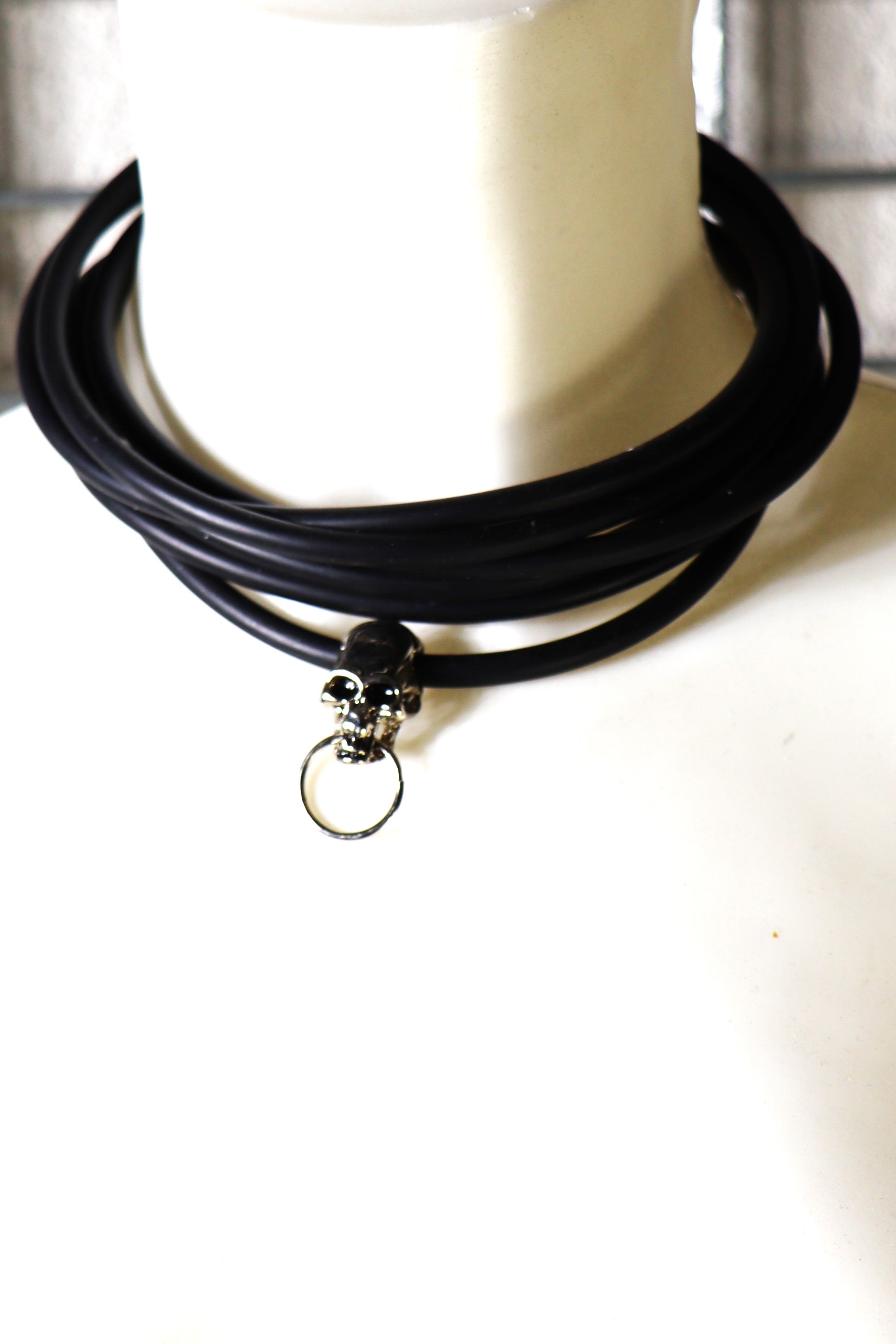 Handgefertigter Halsschmuck mit Totenköpfen, aus verschiedenen Materialien.