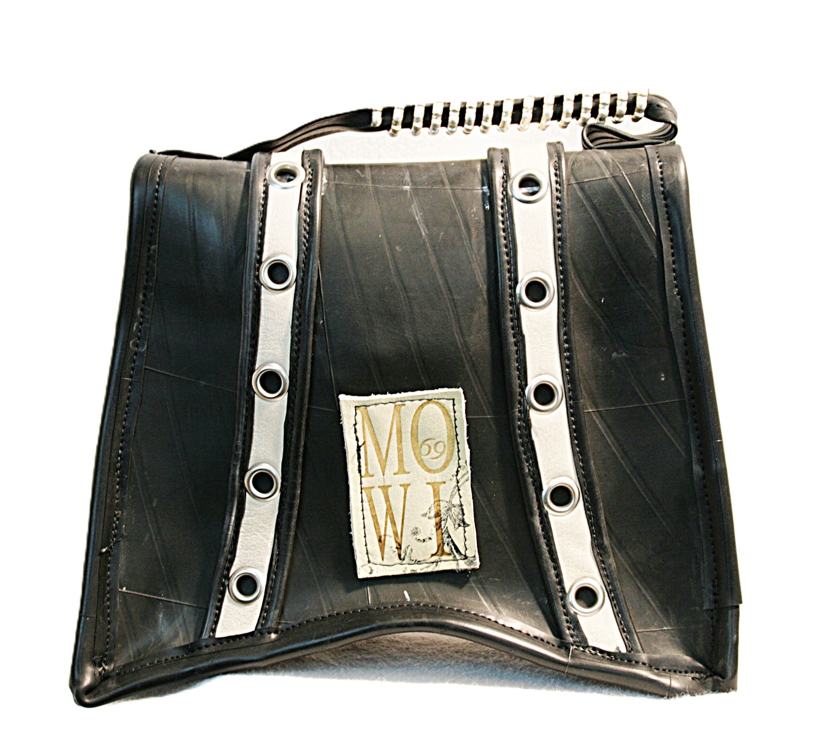 Handtasche aus LKW Schlauchgummi und weißem Leder.