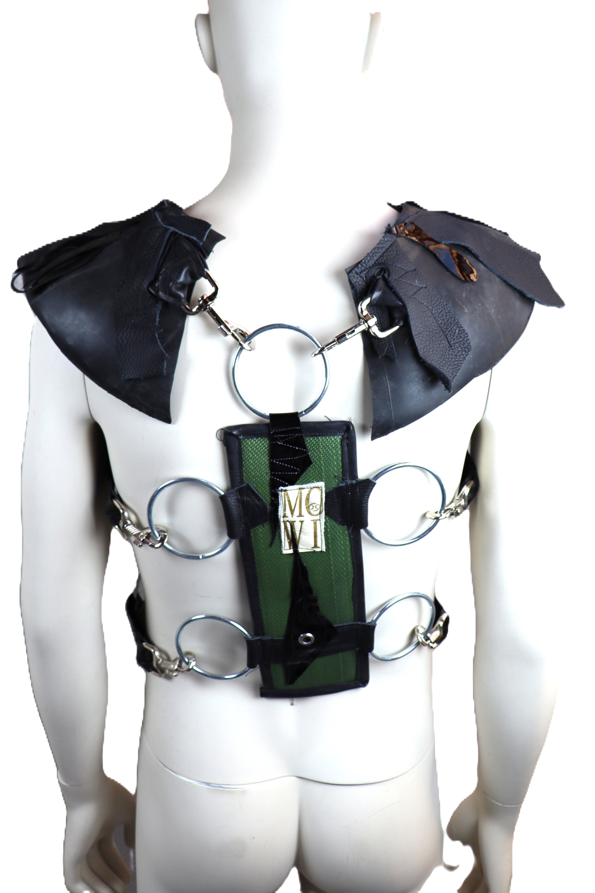 Handgefertigter Harnisch aus olivgrünem Feuerwehrschlauch, kann an der Seite durch mowi69 Gurte in der Weite angepasst werden.