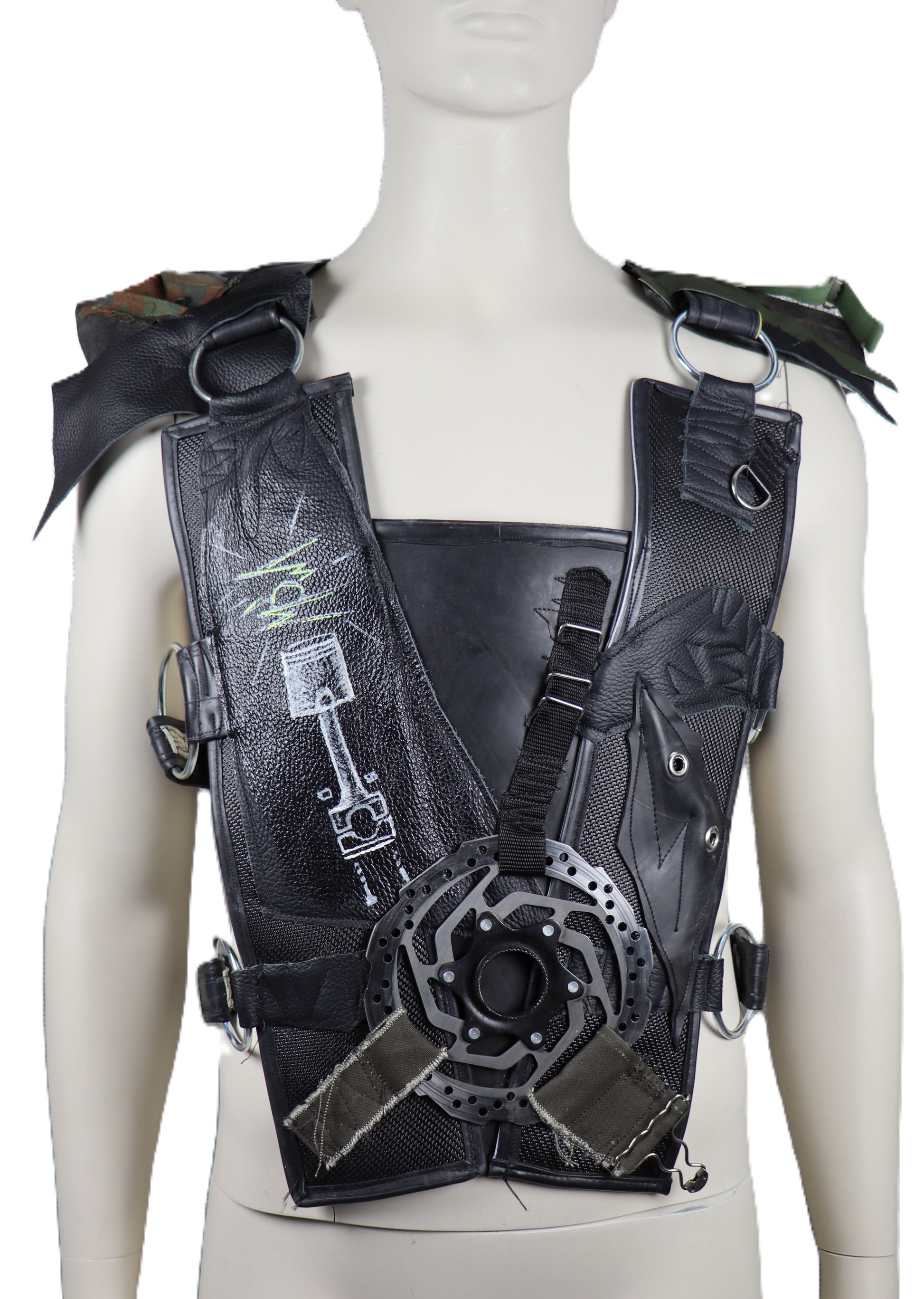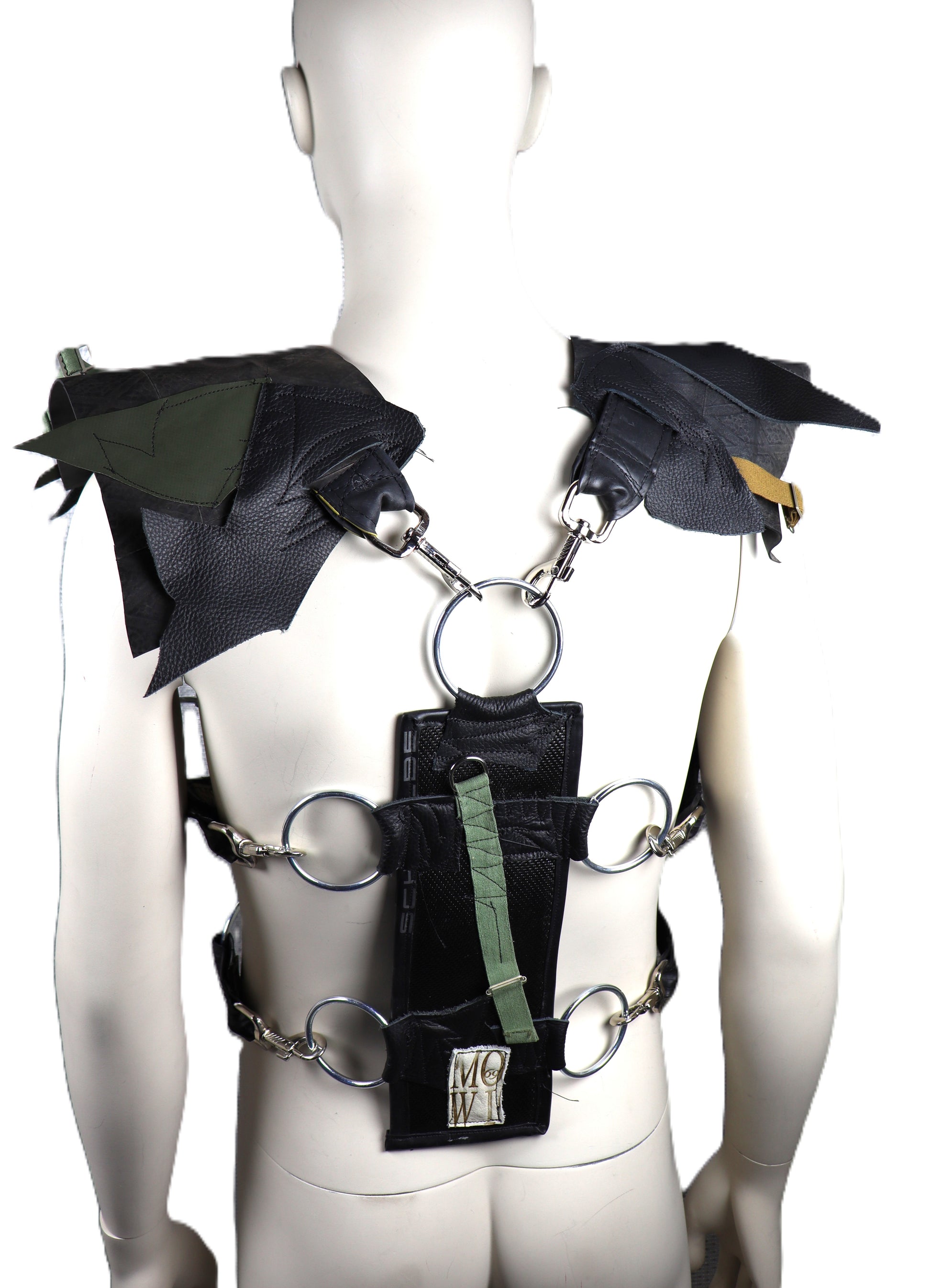 Handgefertigter Harnisch aus schwarzem Feuerwehrschlauch. In der Weite, kann der Harnisch durch mowi69 Gurte an den Seiten und Schultern verstellt werden.