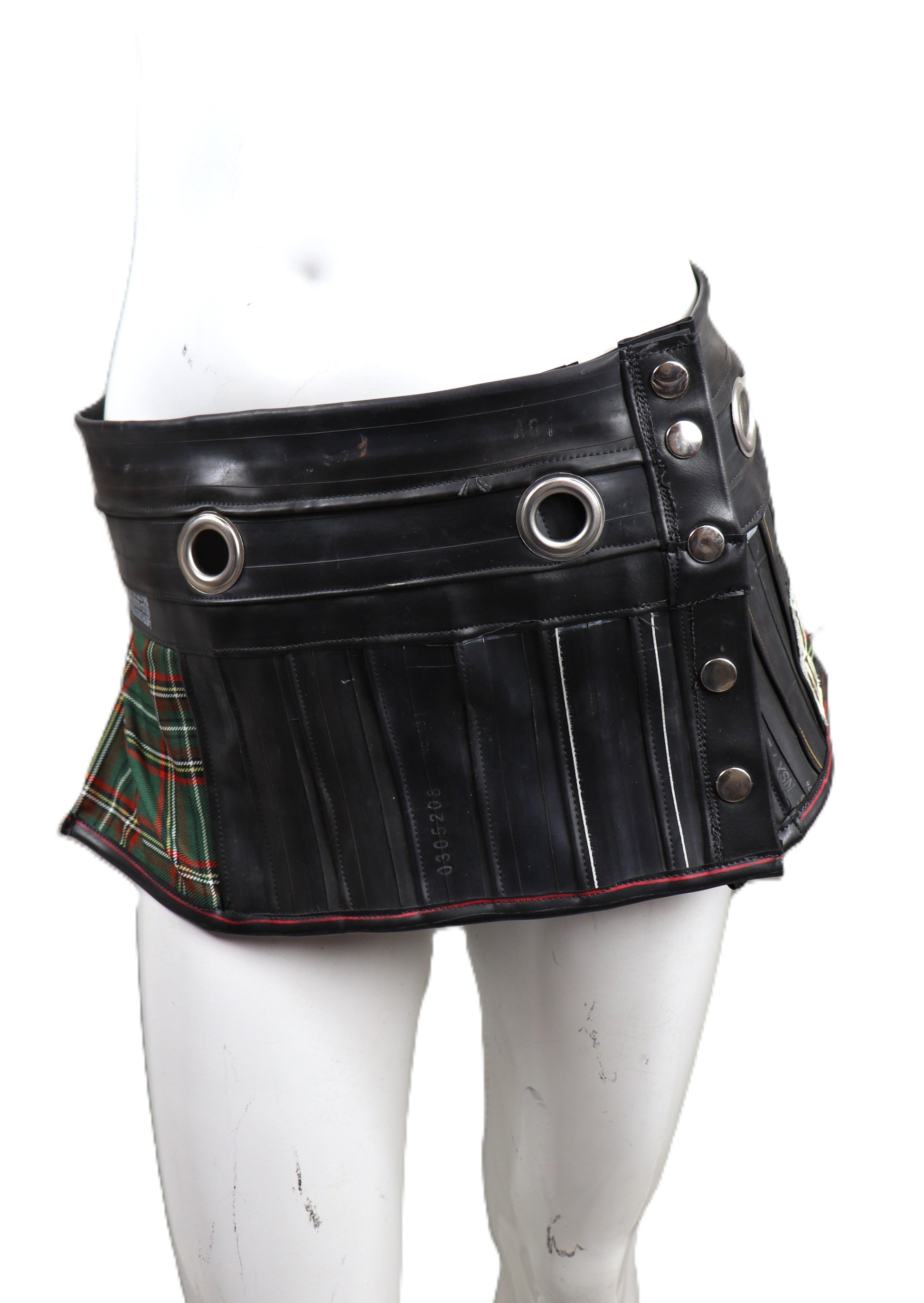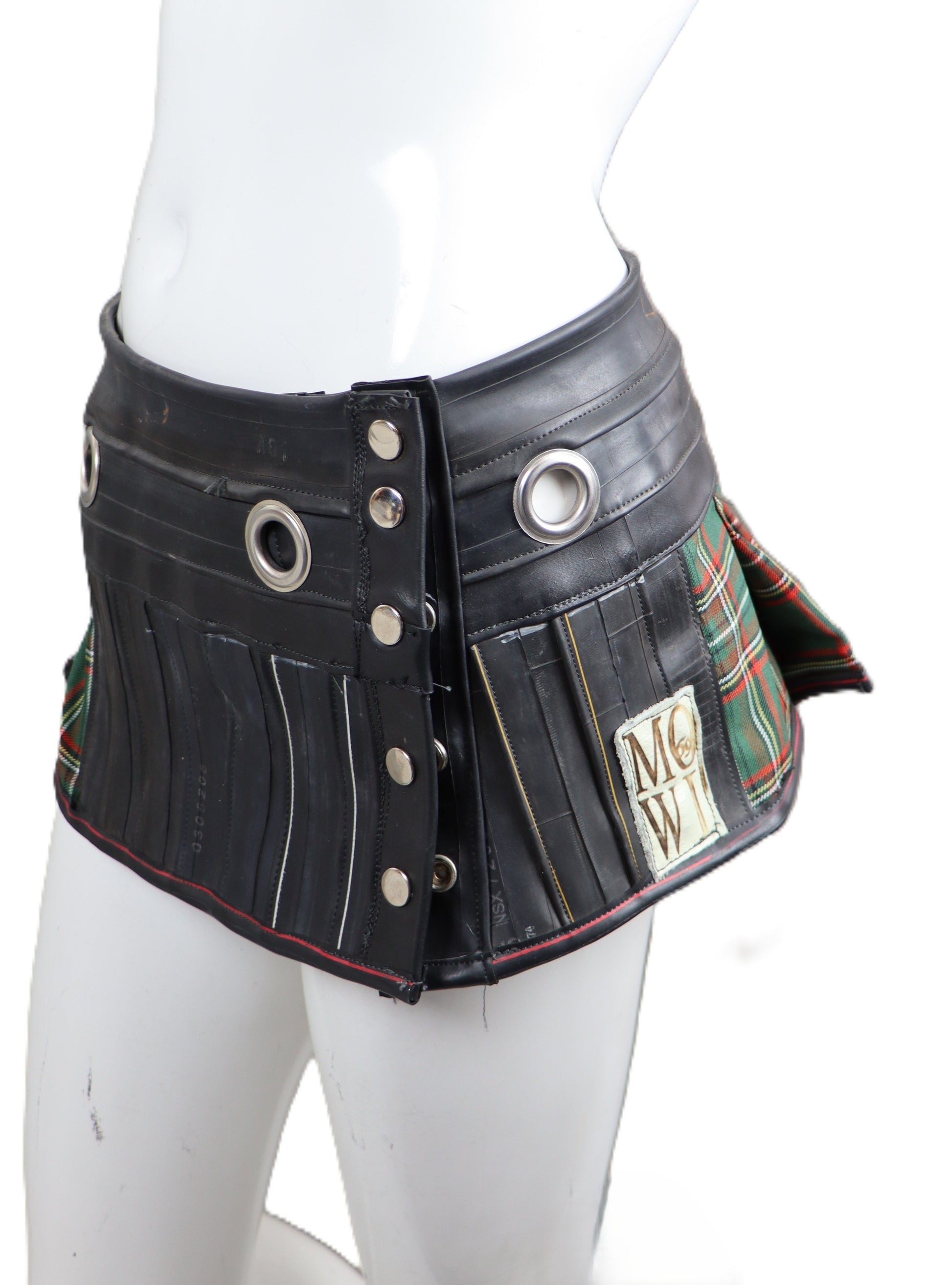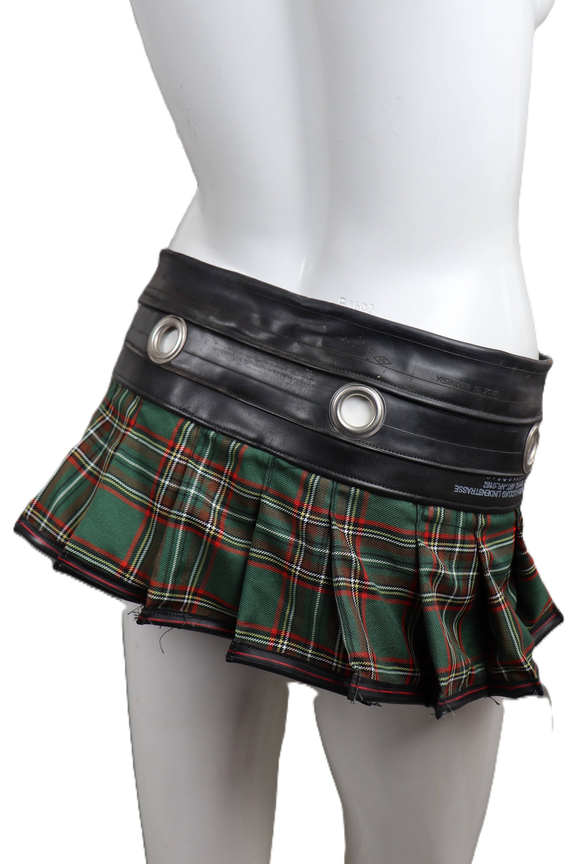 Handgefertigte Rock aus grünem Schottenkaro mit Schlauchgummi.