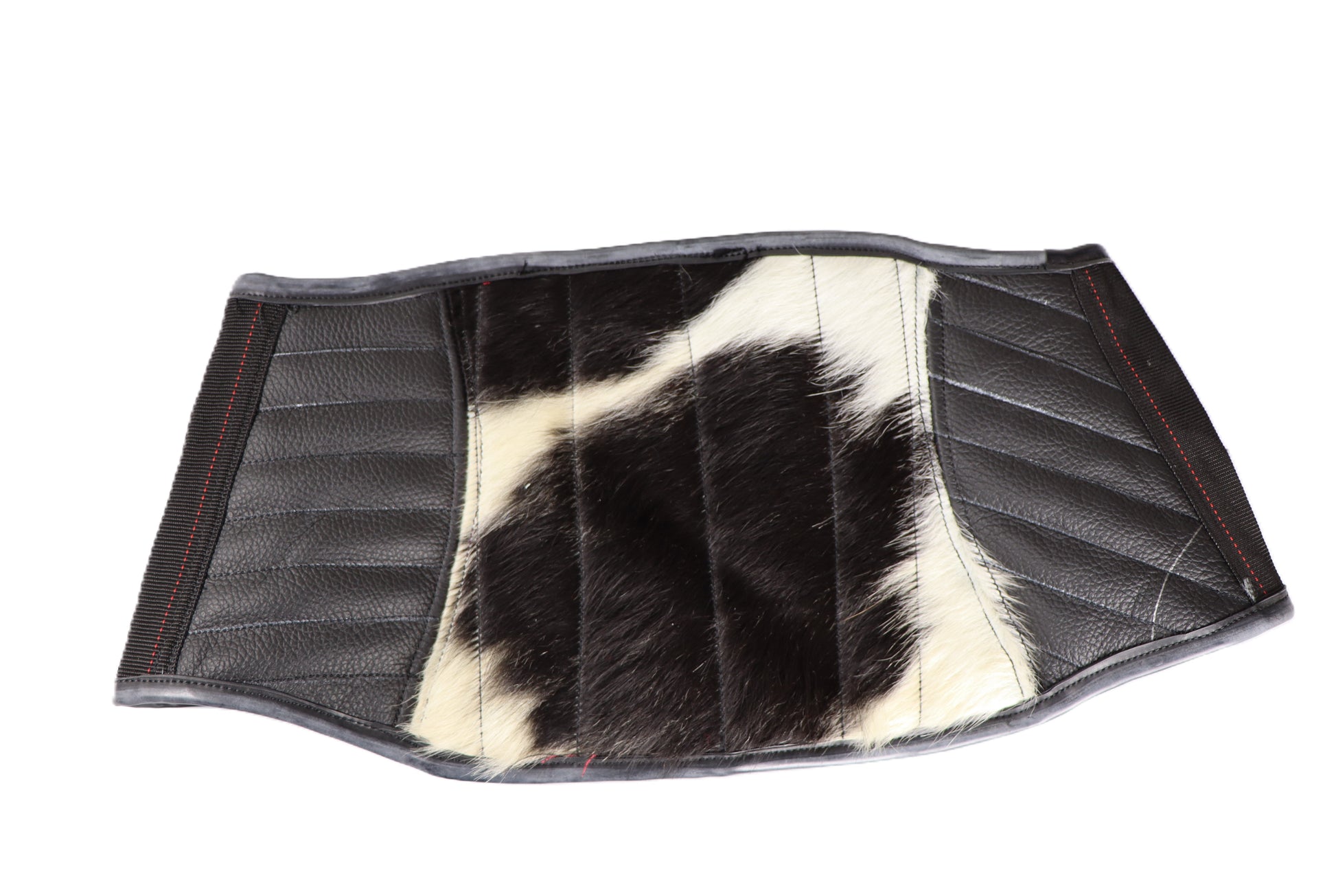 Handgefertigter Nierengurt mit Kuhfell, Dieser Nierengurt im klassischen Stiel hat zur idealen Passform rechts und linke einen Gummistreifen.