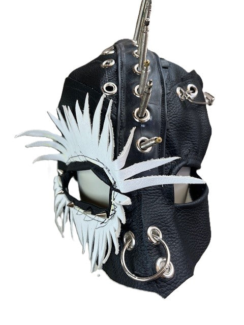 Ledermaske mit weißen Wimpern