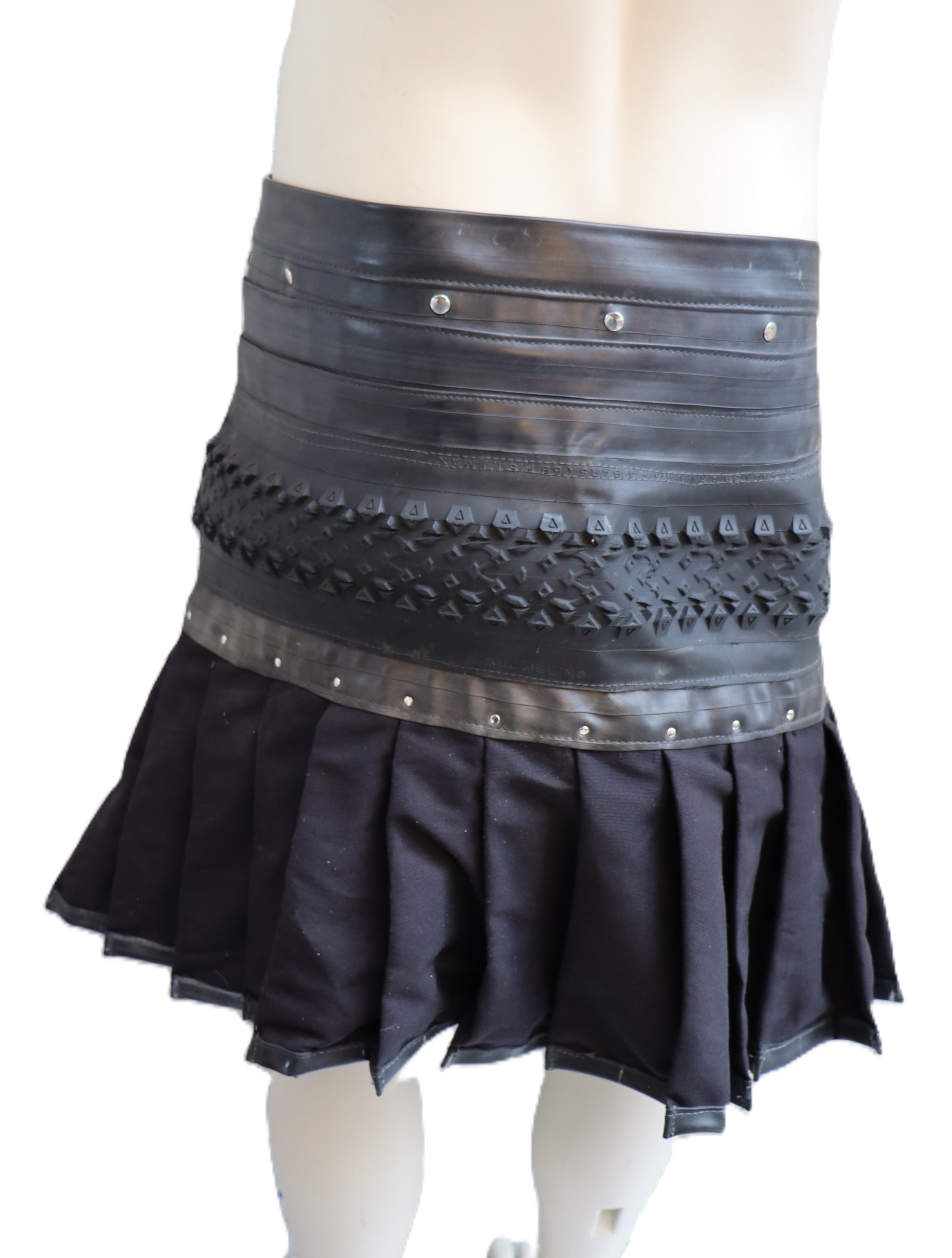 Handgefertigter Rock aus schwerem Stoff kombiniert mit Fahrradschlauchgummi