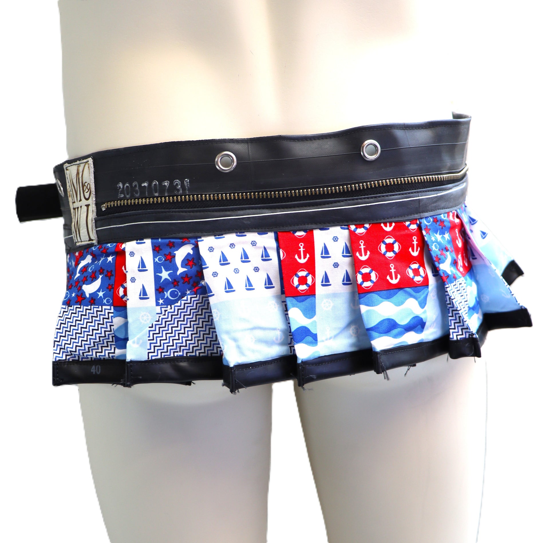 Handgefertigter Mini Rock aus Baumwollstoff und Schlauchgummi. Der Rock wird auf der Hüfte getragen.