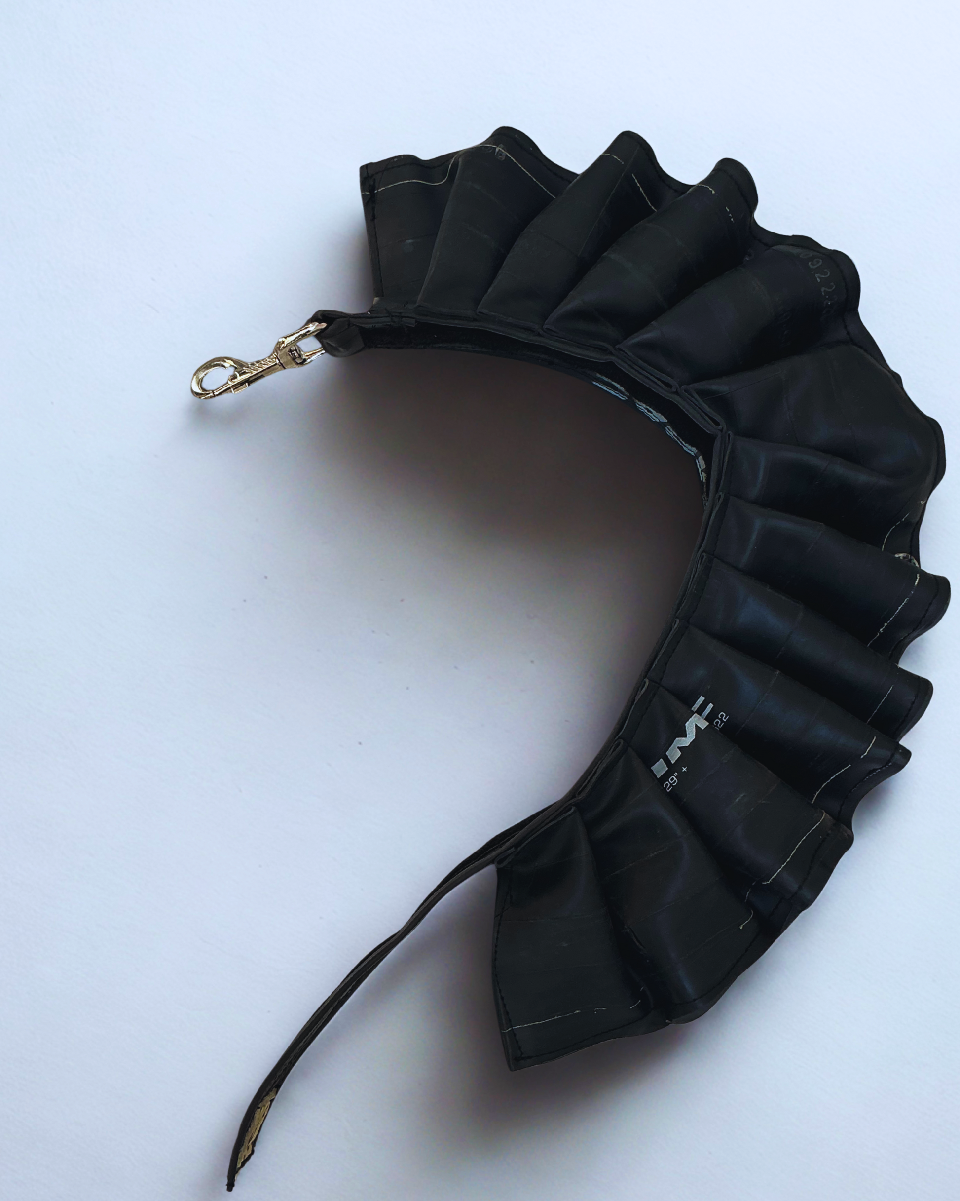 Dieser handgenähte Sondergurt Rüsche, ist eine Ergänzung für Dein Gurtsystem. Aus upgecyceltem Fahrradschlauch gefertigt. Durch die Kombination von Klettverschluss und Karabiner ist der Gurt stufenlos verstellbar.