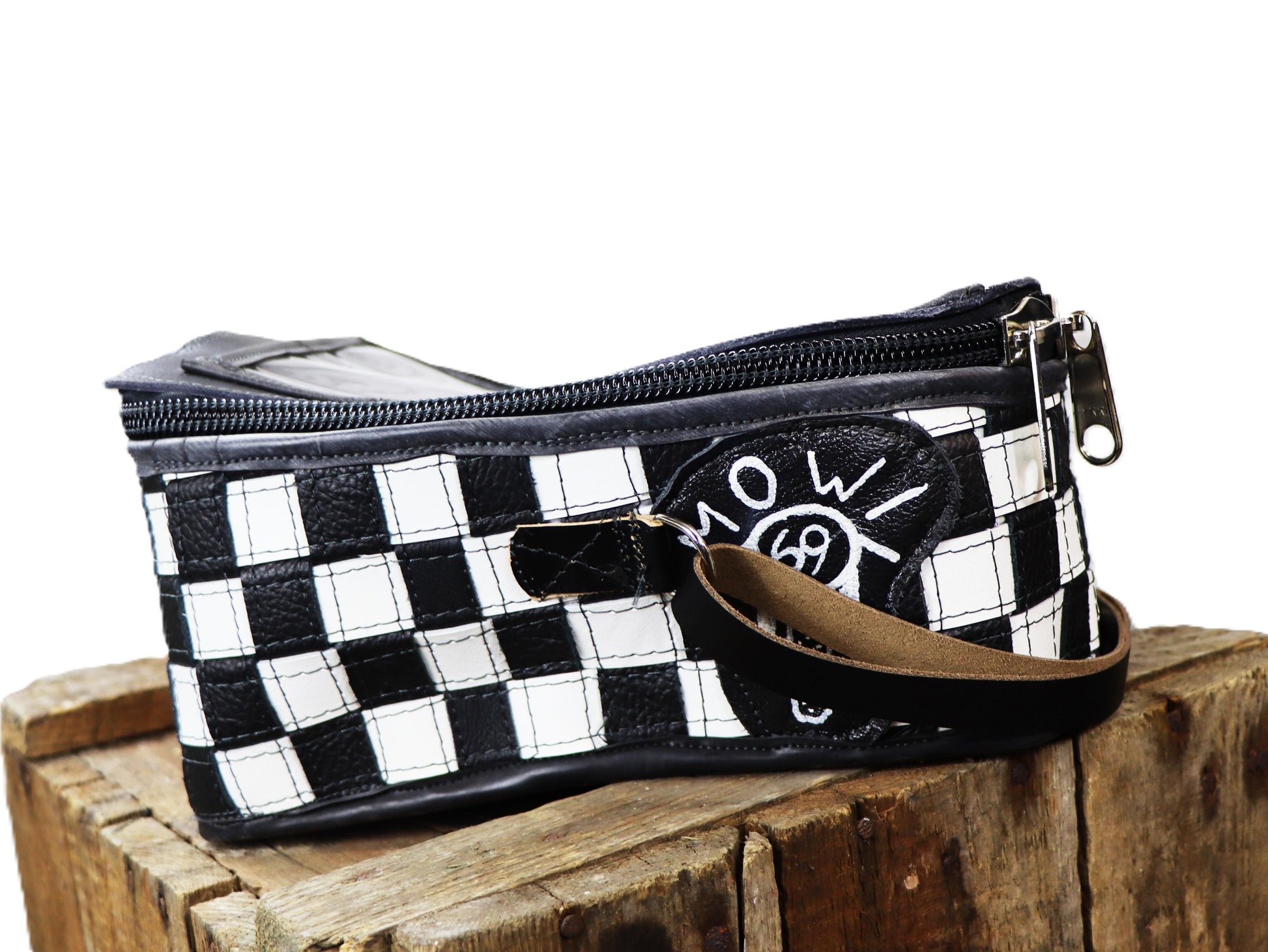 Handgefertigter Tankrucksack aus Leder und LKW Schlauch auf der Magnetseite für die Fixierung auf dem Tank. Auf dem Deckel befindet sich ein transpatentes Fach, für Handy oder eine Karte.