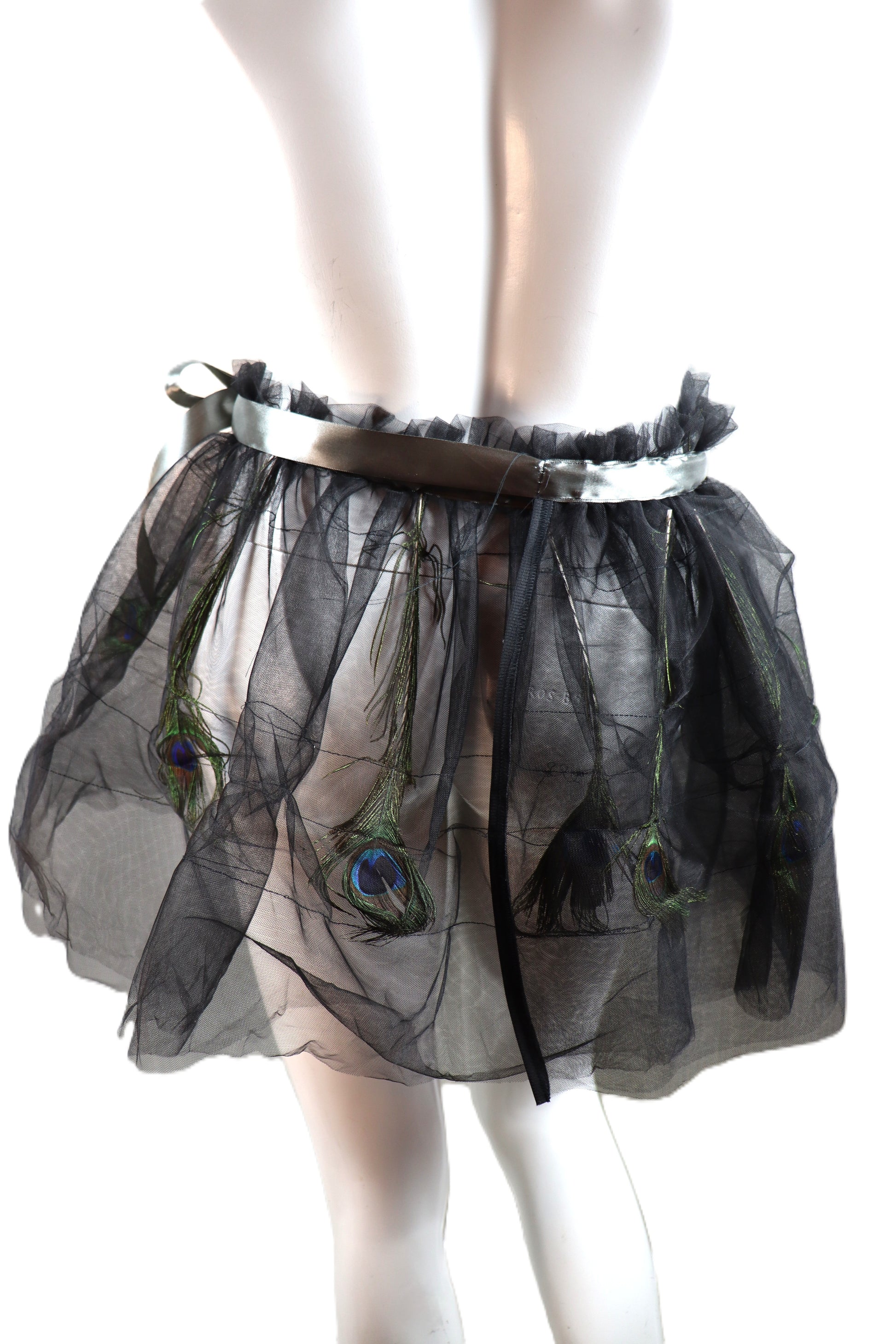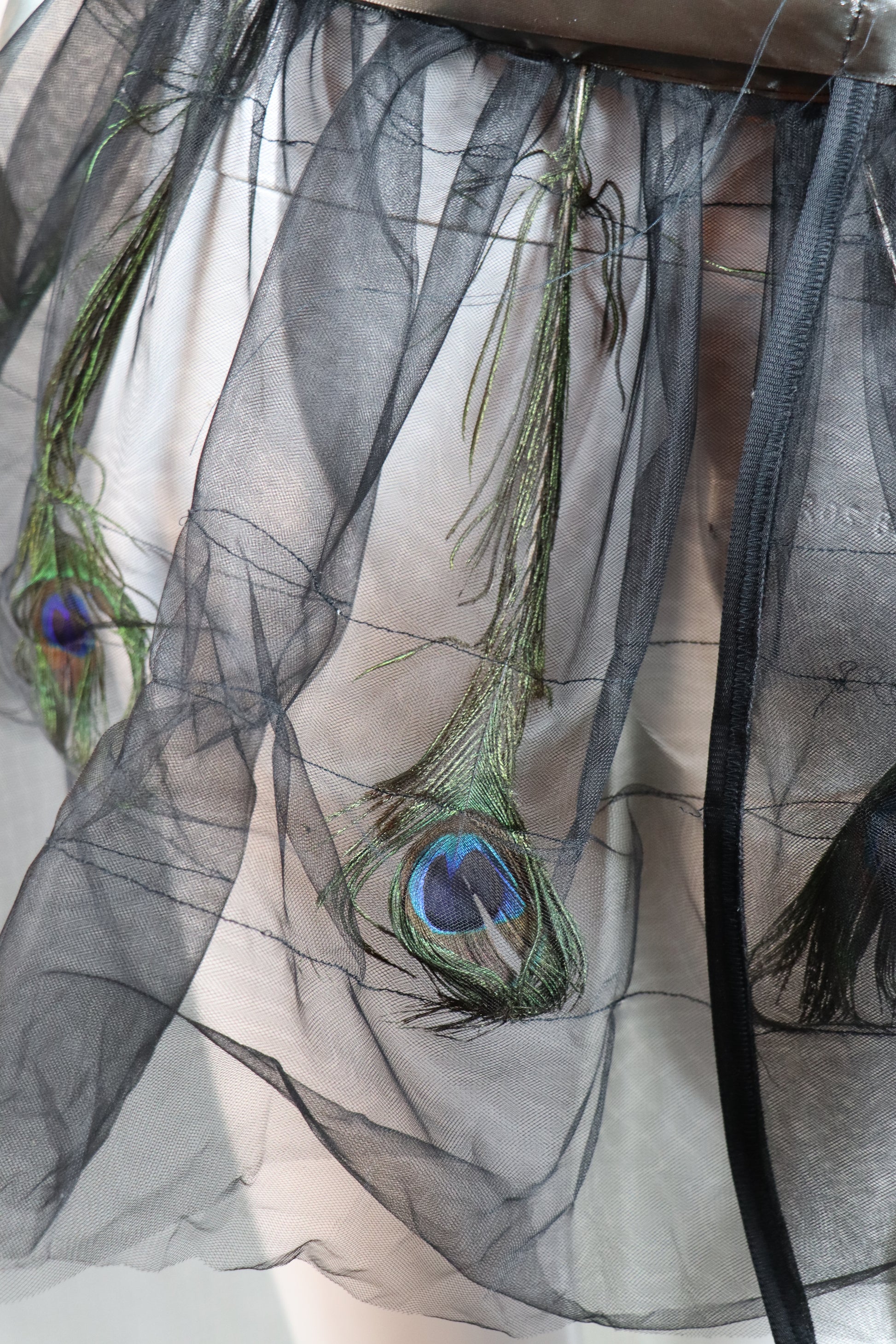 Handgefertigter Tüllrock mit eingearbeiteten Pfauenfedern. Der Rock kann gut zu Stapsen oder über einem Petticoat getragen werden. Rock wird gewickelt
