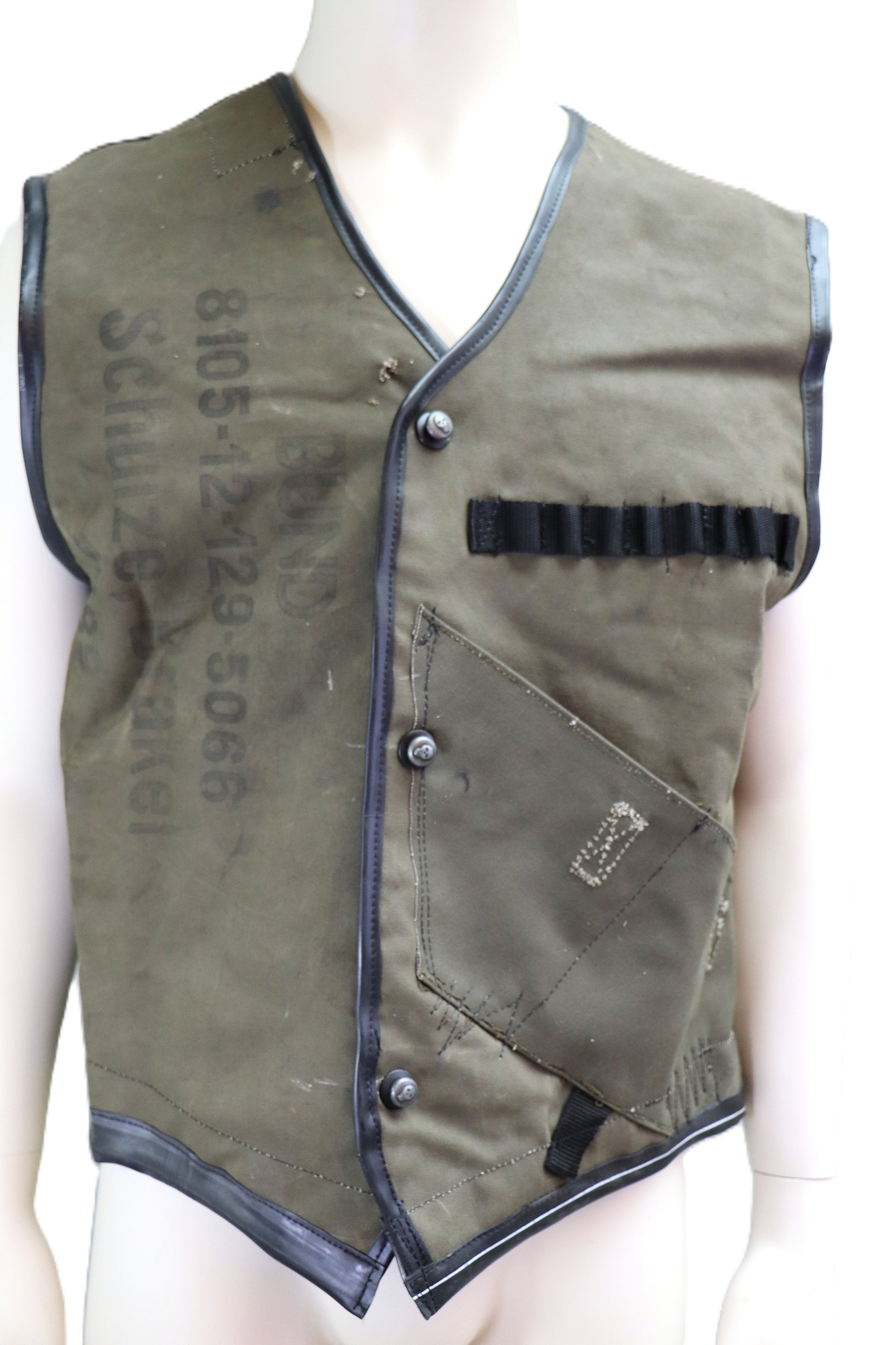Diese Weste wurde aus einem Bundeswehrseesack gefertigt. Weste wird durch Loxx Knöpfe verschlossen.